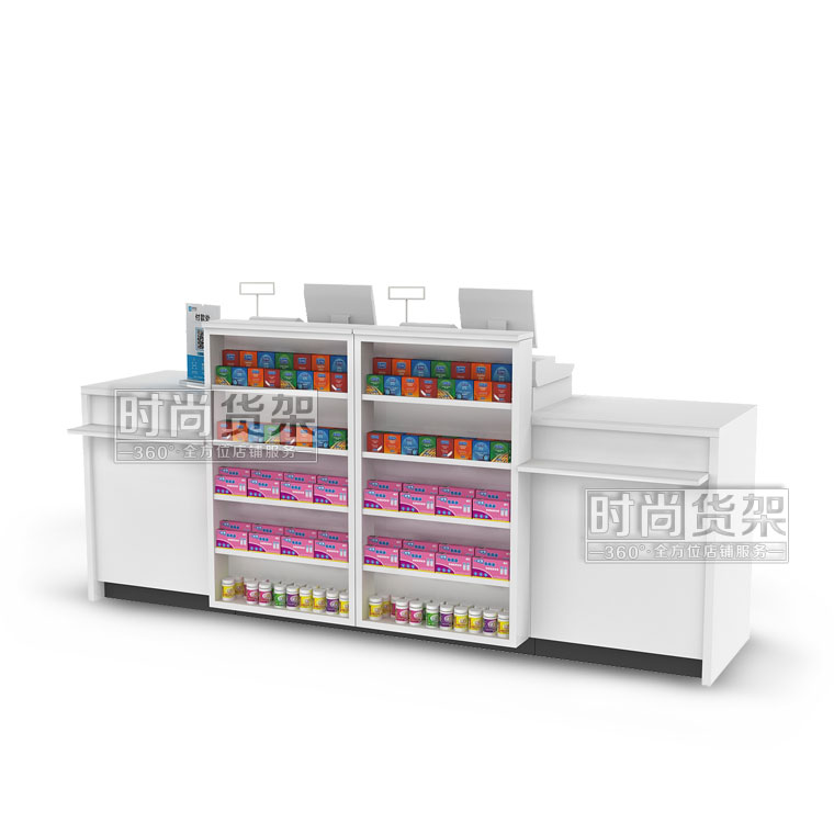 【產品名稱】大容量藥店收銀臺/藥店鋼木收銀臺/藥店收銀區柜臺