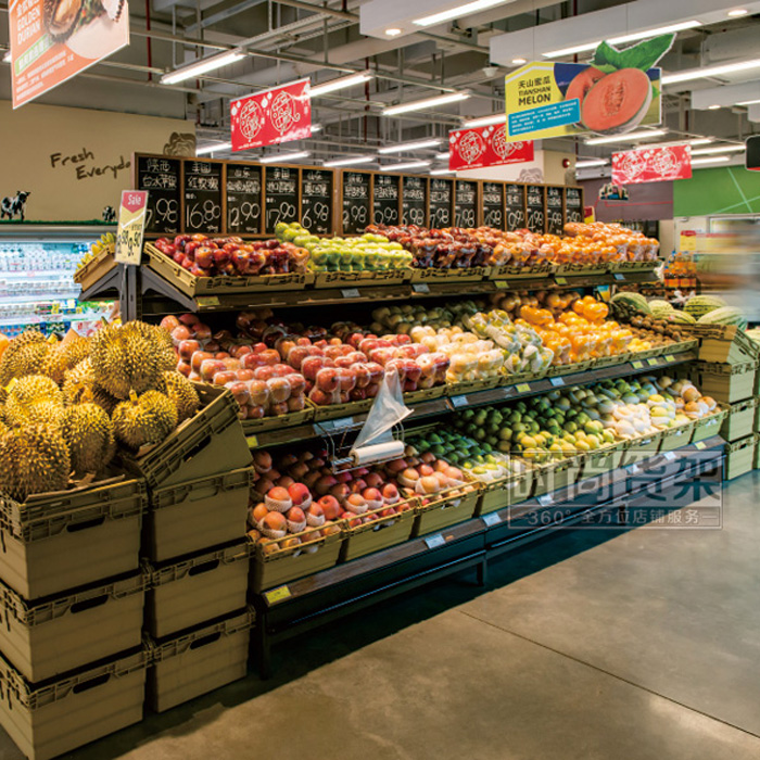 超市貨架_單面果蔬展示架 (網(wǎng)背板)
