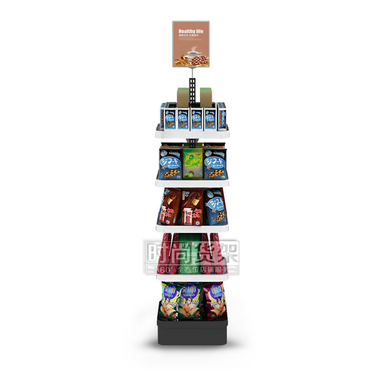 • 產品描述:這款便利店促銷貨架立柱和底板都采用優質冷軋鋼,一體成型工藝,可有效保障承重能力。